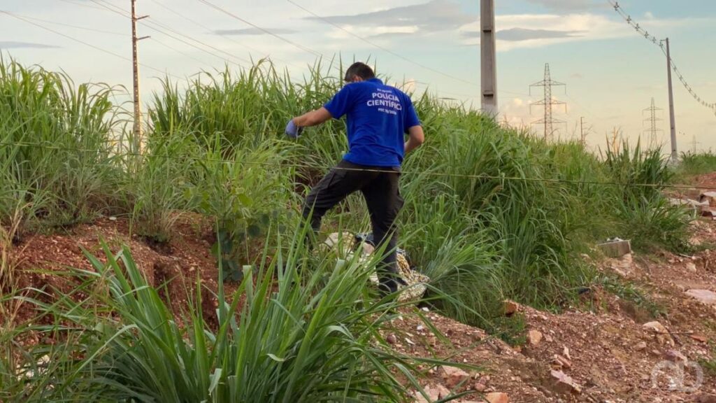 Quando a equipe chegou, observou que a vítima tinha sinais de tortura. Corpo estava amarrado, amordaçado e com sinais de perfuração na região da cabeça. Ao lado, estava uma moto Honda vermelha e um capacete jogado.