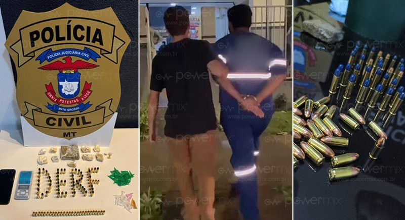 O suspeito foi conduzido e será autuado em flagrante na DERF/ Nova Mutum, onde responderá pelos crimes de tráfico de drogas e posse irregular de munição.