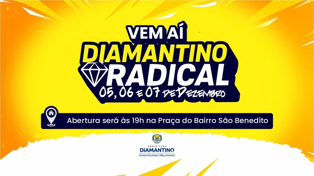 Prepare-se para viver três dias de muita energia, interação e entretenimento em Diamantino. De 5 a 7 de dezembro, a partir das 19h, a Praça do bairro São Benedito recebe a primeira edição do Diamantino Radical, um evento criado para reunir famílias, fortalecer a convivência comunitária e oferecer atividades diferenciadas para todas as idades.