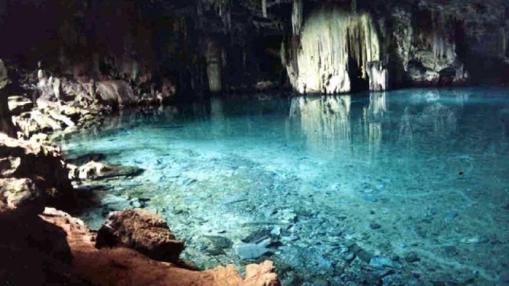 O local é considerado como um dos principais atrativos naturais da região. Ela também é conhecida por “gruta paradisíaca”, formada por rochas e uma lagoa de água cristalina, ela encanta por sua beleza única. De acordo com os pesquisadores, a lagoa se formou quando o lençol freático emergiu na região. A cor azul característica da água é resultado de diversos elementos, incluindo carbonato de cálcio e magnésio.