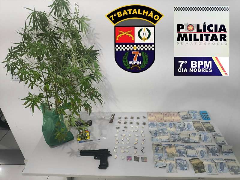Um homem identificado pelas iniciais C.S. foi preso por tráfico e cultivo ilícito de drogas durante ação da Polícia Militar do Estado de Mato Grosso, na Avenida 4, bairro Jardim Petrópolis, em Nobres/MT.