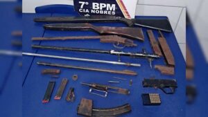 HOMEM TENTA INTERVIR EM BRIGA, É ATACADO COM FACA E POLÍCIA DESCOBRE ARSENAL EM NOBRES