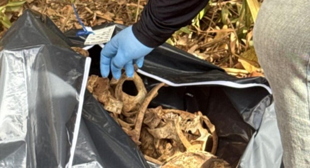 Durante a escavação, duas covas rasas. Na primeira, foram localizadas duas ossadas, já na outra estava a terceira. Cena foi isolada e preservada para os trabalhos da DHPP e Politec.